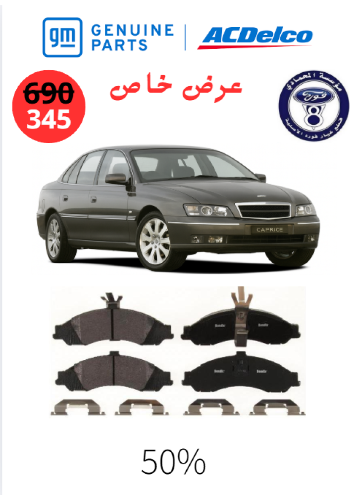 📝 بطاقة المنتج💡 قماش فرامل امامي شيفروليه كابرس / لومينا 1999–2006 ⭐⭐⭐