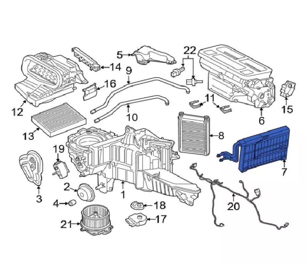 ثلاجة مكيف (Evaporator Core) عالية الجودة، مسؤولة عن تبريد الهواء الداخل للمقصورة عبر تمرير غاز الفريون. توفر برودة مثالية وأداء ثابت حتى في الأجواء شديدة الحرارة.